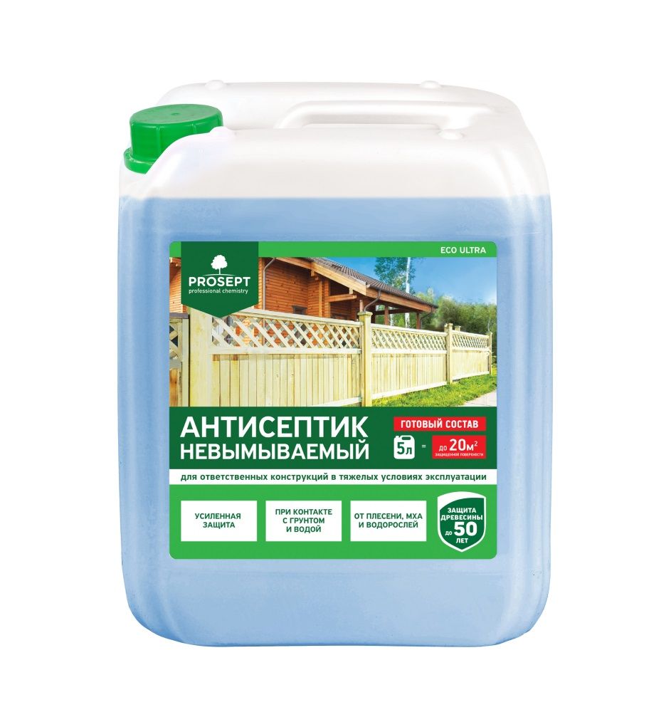 Читать все статьиАнтисептик невымываемый 5,0л. концентрат1:10, зелёный. ULTRA PROSEPT