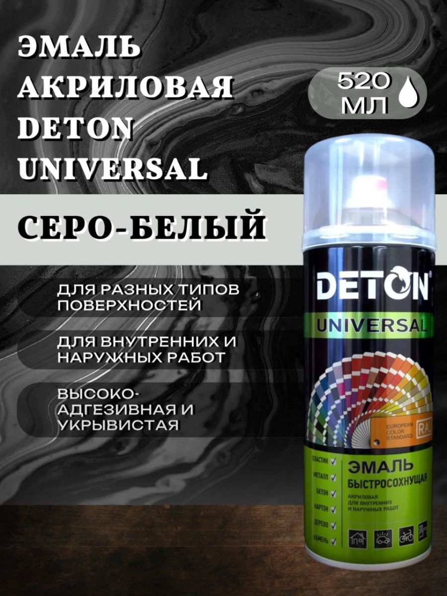 Эмаль акриловая СЕРО-БЕЛЫЙ 9002. 520мл DETON UNIVERSAL