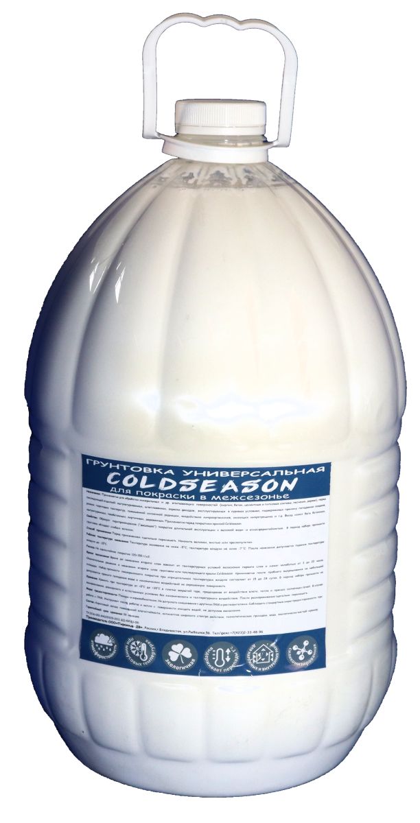 Грунтовка акрилатно латексная, фасадная при минус -5. 10,0литр. Coldseason. ВД-ДР 01-04. ДОМ РЕМОНТА, артикул П-31 - Применяется для обработки минеральных и других впитывающих поверхностей (кирпич, бетон, цементные и гипсовые составы, песчаник, дерево), перед последующей отделкой: оштукатуриванием, шпатлеванием, окраски фасадов, эксплуатируемых в суровых условиях, подверженных прямому попаданию осадков, резким перепадам температур, повышенной солнечной радиации, воздействию микроорганизмов, имеющих микротрещины и т.д. Фасад может быть бетонным, оштукатуренным, газобетонным, кирпичным, деревянным. Применяется перед покрытием краской Coldseason.