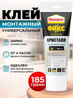 Жидкие гвозди полиакриловые, кристалл, Прозрачный, туба, 250гр. Фикс, Момент