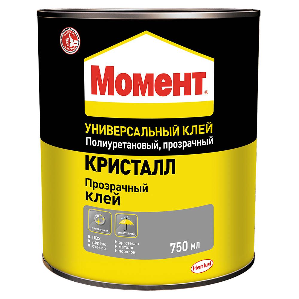 Клей контакный Кристалл, полиуретоный. ПРОЗРАЧНЫЙ. 750МЛ. МОМЕНТ