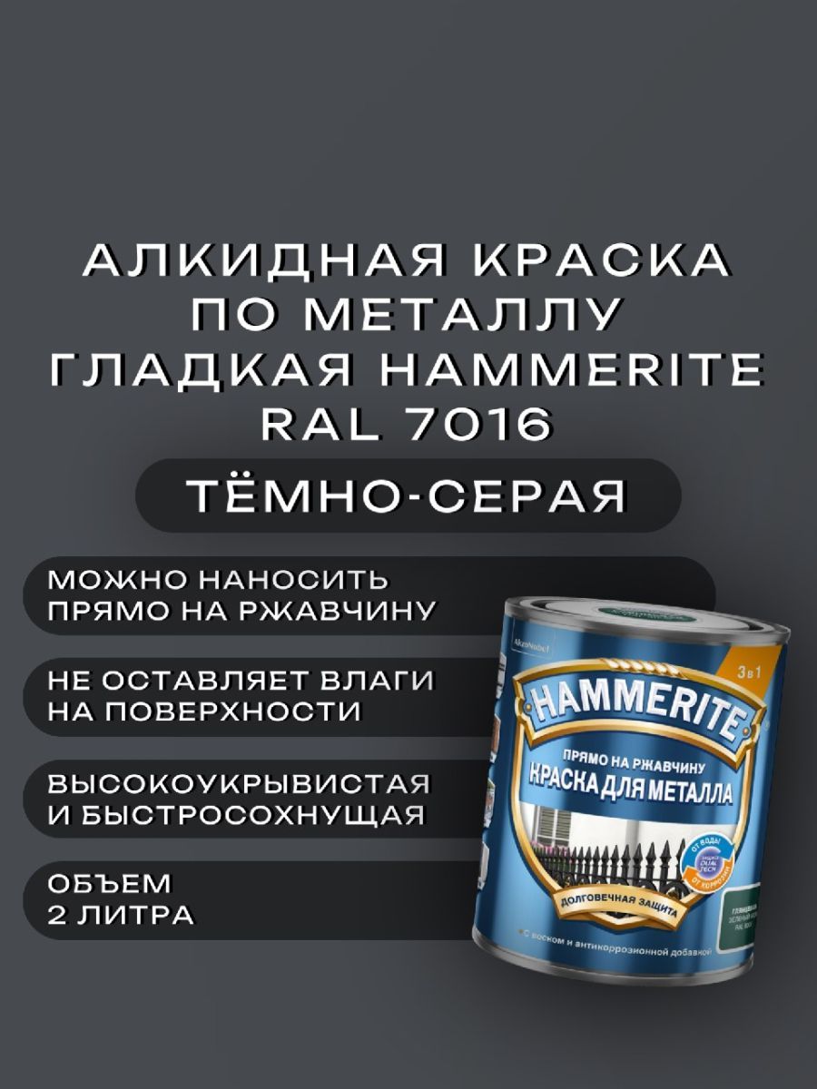 Читать все статьиКраска по металлу HAMMERITE гладкая Темно-серая Ral 7016 2л