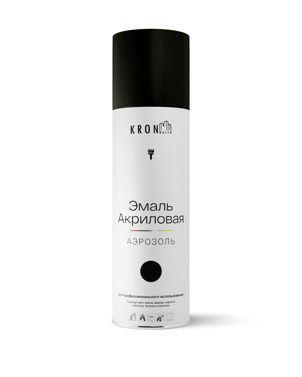 Читать все статьиКраска спрей акриловая RAL9005, черная, глянец 520мл KRONbuild