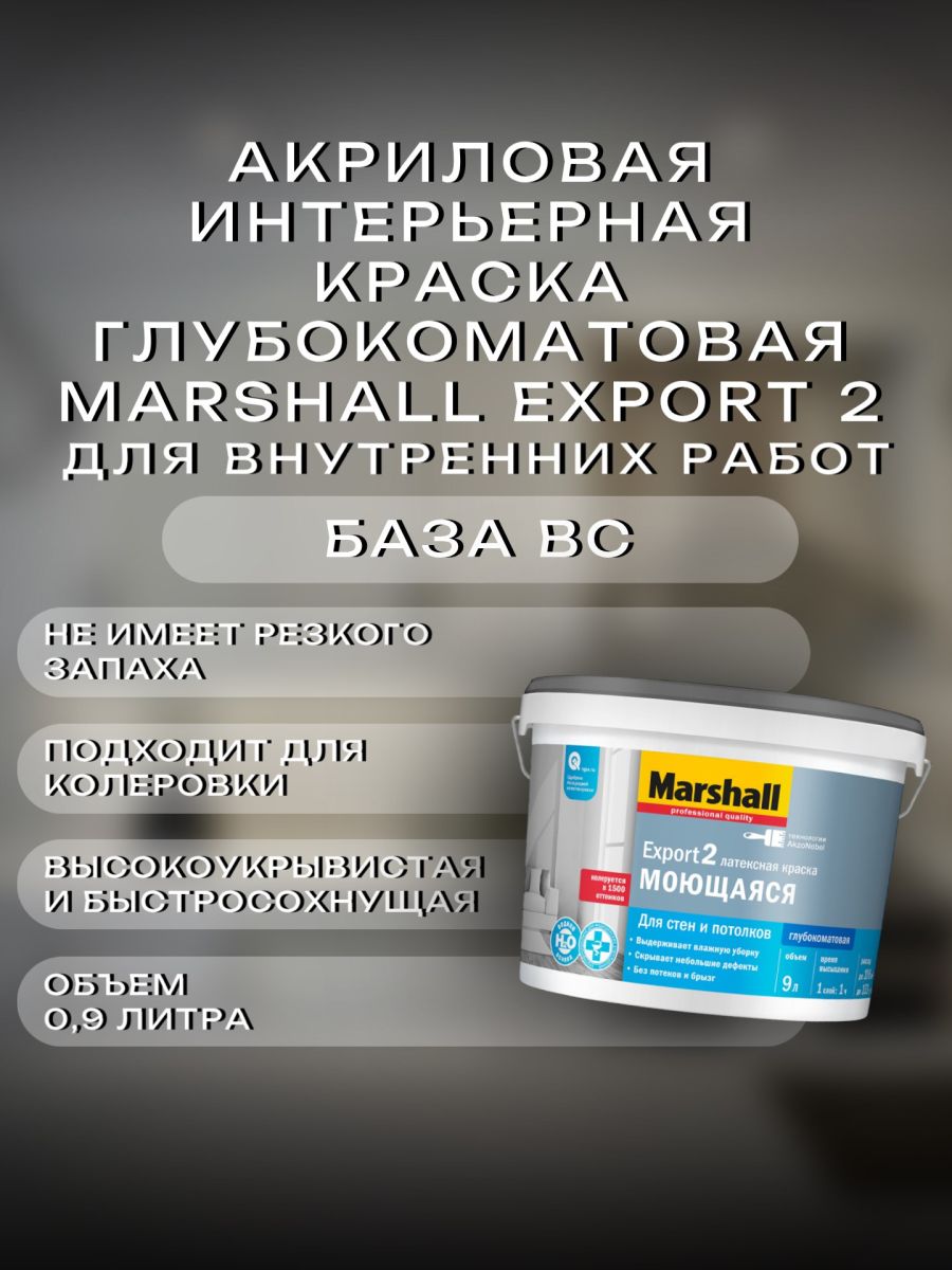 Читать все статьиКраска в/э интерьерная глубокомат. MARSHALL EXPORT-2 BС 0.9л
