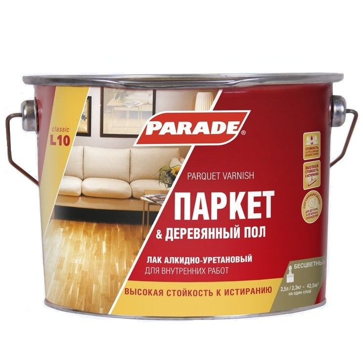 Читать все статьиЛак алкидно-уретановый PARADE L10 Паркет & Деревянный пол Матовый, 2,5л