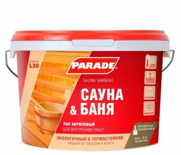 Читать все статьиЛак для саун PARADE L30 Сауна & Баня Полумат., 2,5л.