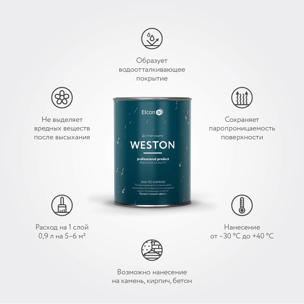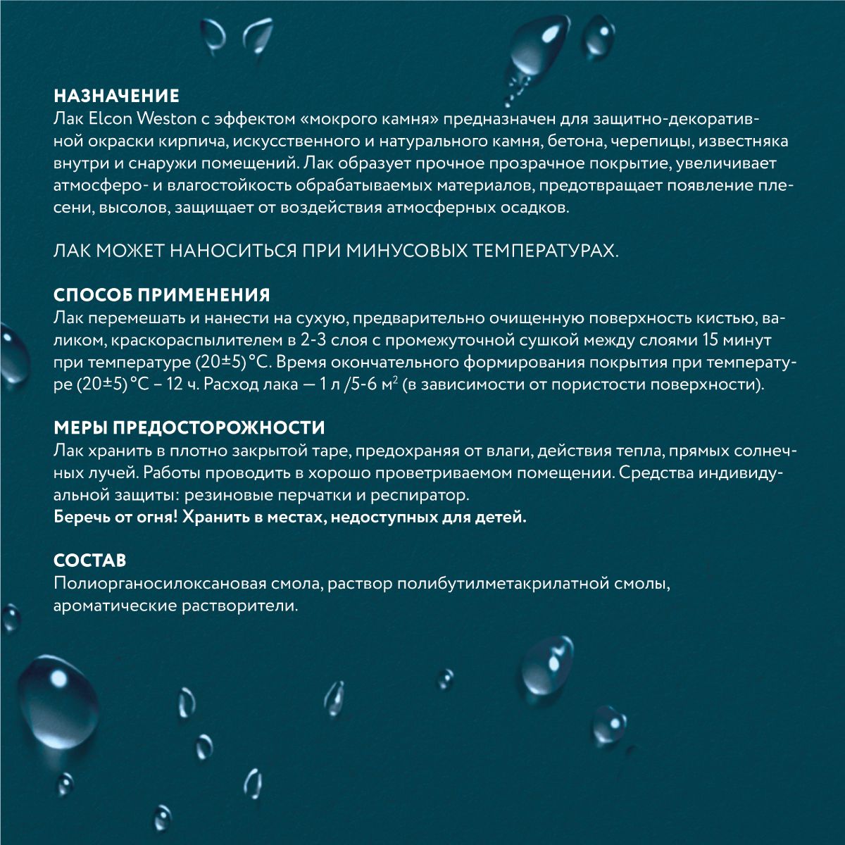 Лак по камню Elcon Weston предназначен для придания «мокрого эффекта» поверхностям из натурального и искусственного