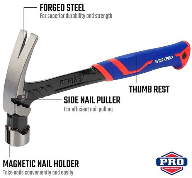 Читать все статьиМолоток-гвоздодер, цельнометаллический. 560 гр. WORKPRO