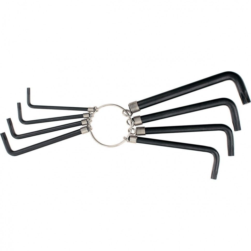 Набор имбусовых ключей Sparta 112667, 9 шт.: T10-T50, оксидированных, на кольце, пригодится мастерам для проведения мелких ремонтных работ с крепежом TORX. Имбусовые ключи имеют широкую область применения, например, подходят для сборки и ремонта бытовой техники и электроприборов. Преимущества Оксидированное покрытие предотвращает образование ржавчины на ключах. Для удобства хранения и транспортировки ключи подвешены на кольцо. Набор включает наиболее распространенные размеры ключей для полноценной работы с крепежом TORX в домашних условиях.