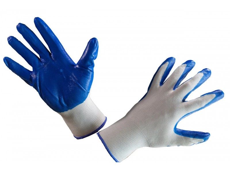 Читать все статьиПерчатки рабочие нейлон, синяя обрезиненная ладонь. KiT