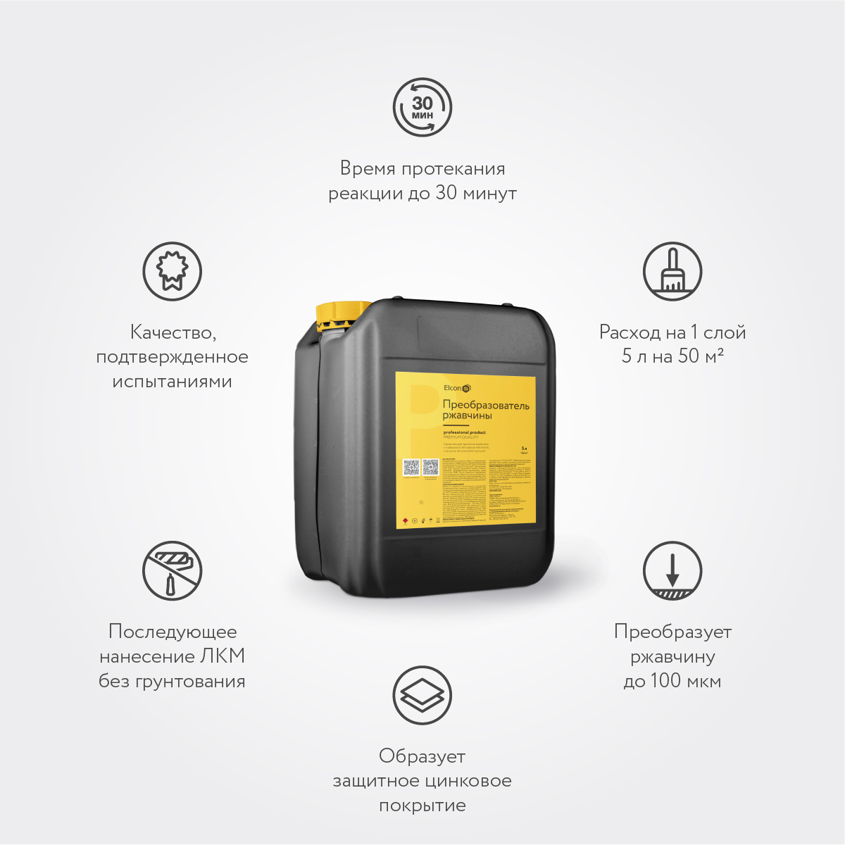 Читать все статьиПреобразователь ржавчины Элкон-П с цинком 5л (5,5 кг)
