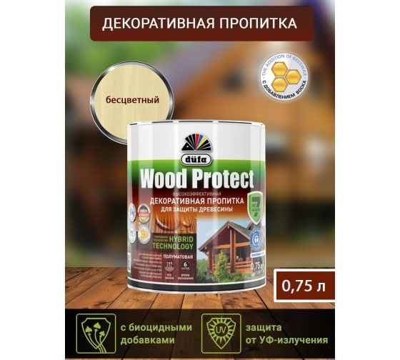 Читать все статьиПропитка по дереву, защитная, Wood Protect бесцветная 0.75 л. dufa.