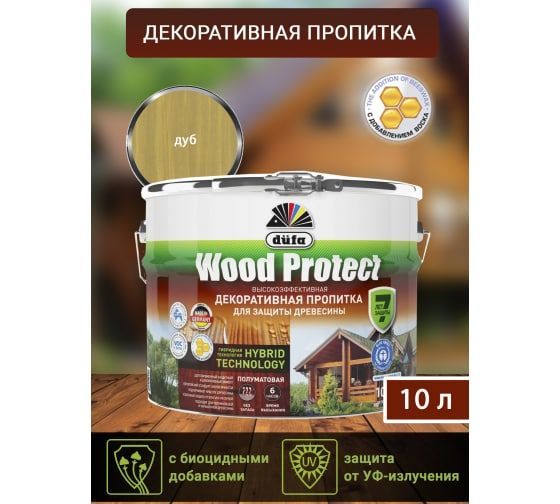 Читать все статьиПропитка по дереву, защитная, Wood Protect дуб 10 л. dufa.
