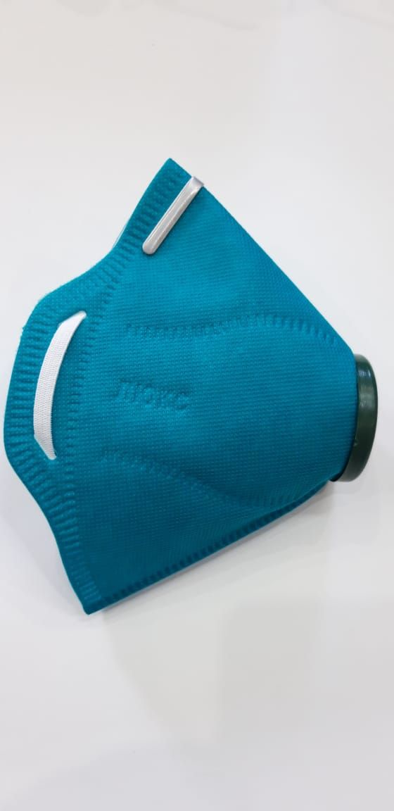 Полумаска состоит из пяти слоев: первый (наружный) слой изготовлен из фильтрующего полипропиленового материала – спанбонд, с водоотталкивающими свойствами, второй и четвертый слой из фильтрующего полимерного материала Мельтблаун, третий и пятый изготовлен из фильтрующего полипропиленового материала – СМС с водоотталкивающими свойствами. Снабжена клапаном выдоха, оголовьем и алюминиевым носовым зажимом.