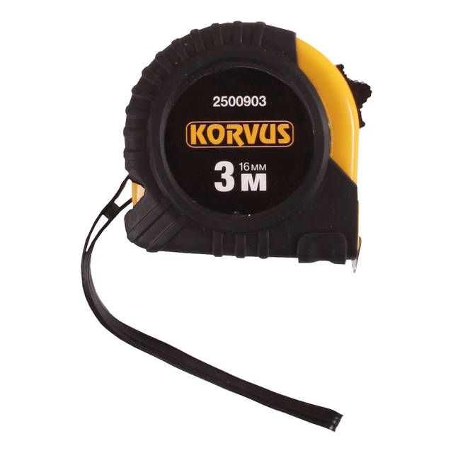 Рулетка 3.0мХ16мм Korvus обрезин. корпус.