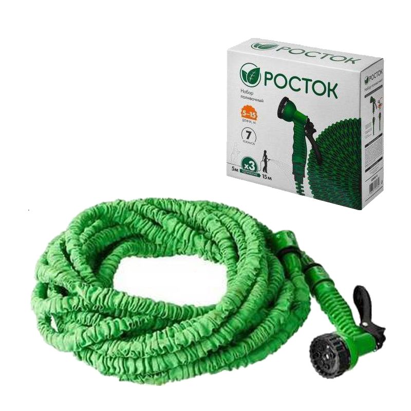 Читать все статьиШланг поливочный удлиняющийся с распылителем 5-15м. Росток