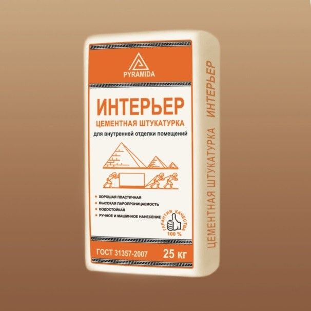 Штукатурка цементная для внутр. работ ИНТЕРЬЕР Пирамида, 25,0кг.