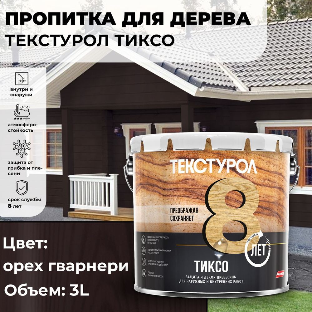 Текстурол тиксо гварнери орех 3,0л. 0014099 защищает от грибков гнили, плесени, синевы, водорослей.