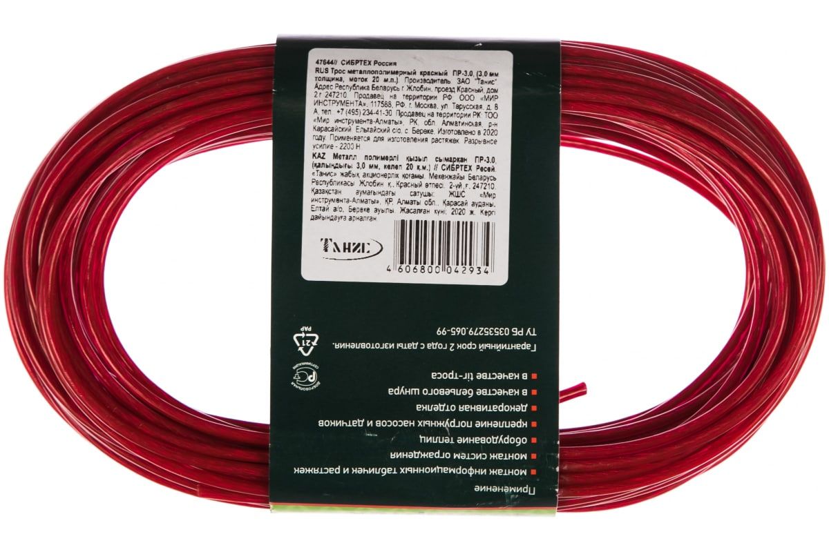 Технические характеристики троса СИБРТЕХ красный ПР-3,0