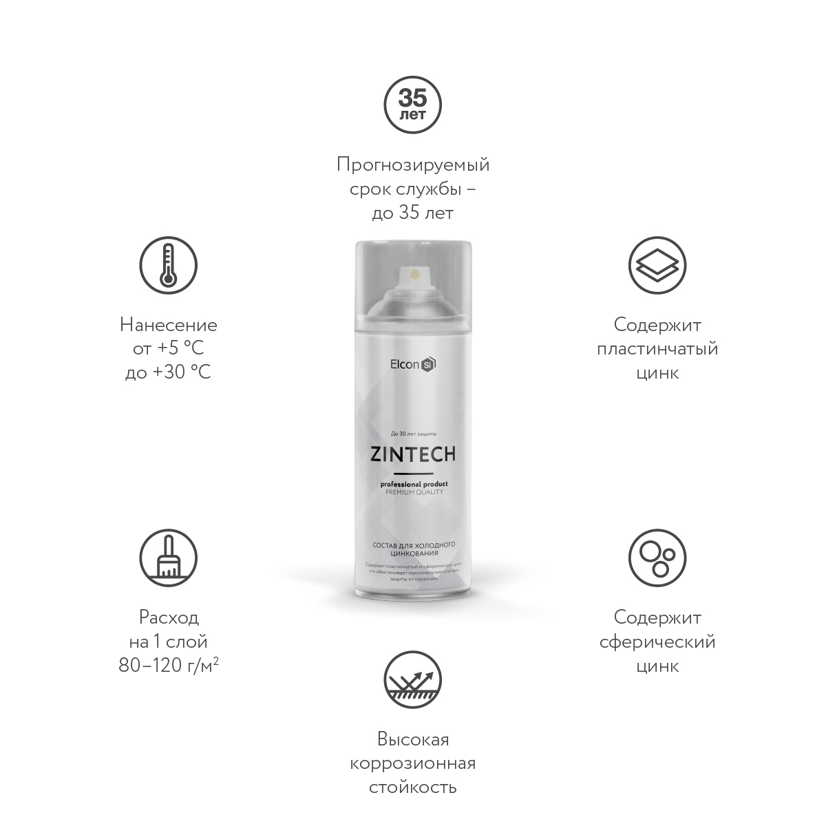 Читать все статьиЦинконаполненная грунт-эмаль Elcon Zintech аэрозоль 520МЛ